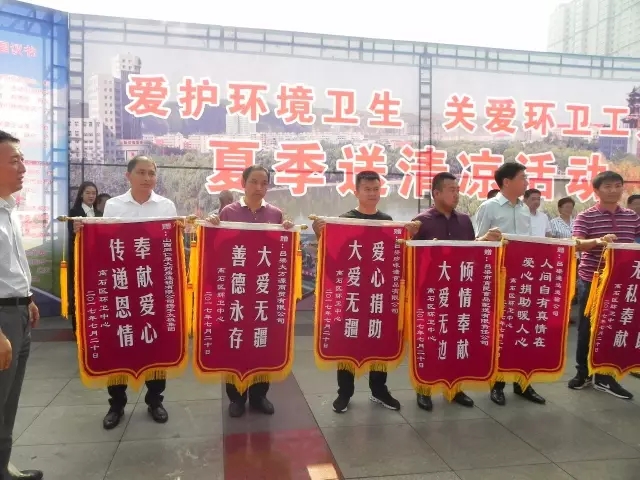 圖為:環(huán)衛(wèi)中心也向愛心企業(yè)回贈榮譽錦旗一面